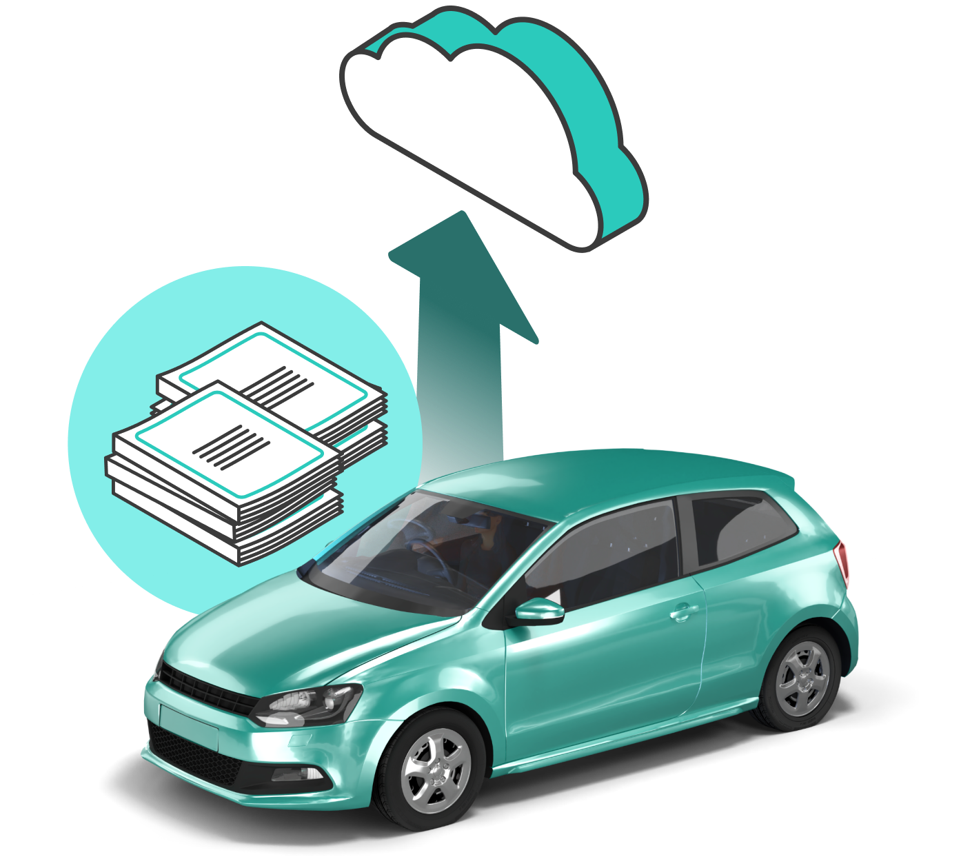 ファイルを添付して書類の種類を選択するだけ。書類をクラウド保存するとともに、車両情報を自動でデータ抽出・マスタ化し、デジタル情報として管理できます。さまざまな書類のファイル形式(PDF、JPGやPNGの画像、CSV)に対応しています。