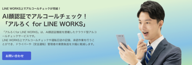 アルろく for LINE WORKSは、LINE WORKSプラットフォーム上で動作するクラウド型のアルコールチェック管理システムです。シンプルでわかりやすい動作に加え、AI顔認証機能を搭載し、運転日誌の記録も行えます。