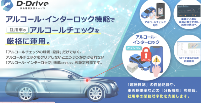 株式会社ユビテックのD-Driveは、白ナンバー事業者の安全運転管理を包括的にサポートするクラウド型アルコールチェック管理システムです。一定濃度以上のアルコールが呼気から検出された際にエンジンを始動できないようにする「アルコール・インターロック」の機能(オプション)により、厳格な運用を可能にしました。