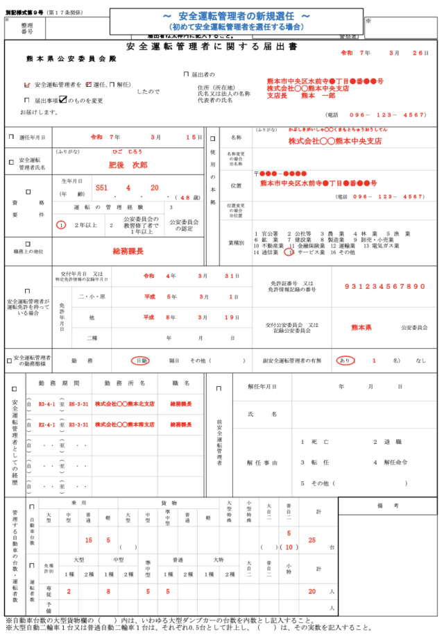 安全運転管理者に関する届出書の書き方・記入例