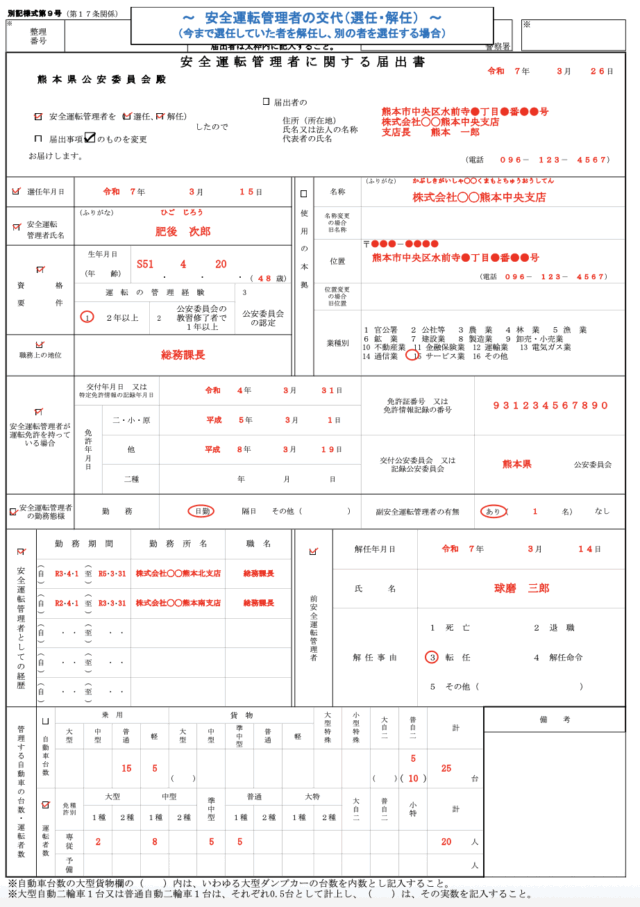 安全運転管理者の解任には次のような例があります。