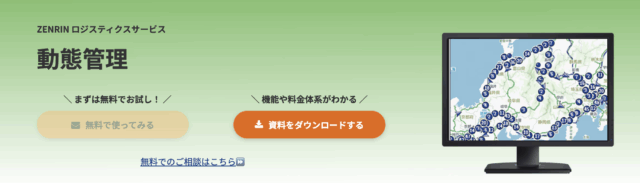 ゼンリンデータコムが提供する「ZENRIN ロジスティクスサービス 動態管理」は、スマートフォンやタブレットの位置情報(GPS)を活用して、車両の運行管理や配送スケジュールなど、移動を伴う業務において効率アップを目的としたクラウド型ソリューション。スマートフォンやタブレットにアプリを入れるだけなので、いつ・どこでも手軽に動態管理が実施できます(用途や動作環境、予算に応じてナビ版と簡易版の2種類から選択できます)ビジネスニーズの高い詳細なゼンリン地図を標準搭載しているため、長年培ったゼンリンデータコムの地図とナビゲーションのノウハウを活用できます。