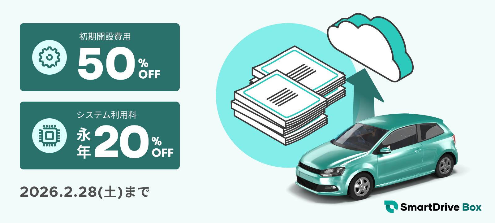 SmartDrive Box は企業が車両を“持つ”上で発生する業務の課題を書類管理を通じてスマートに解決できるクラウドサービスです。車両情報の一元管理、リスクマネジメント、コスト管理など、様々な面で業務をサポートいたします。